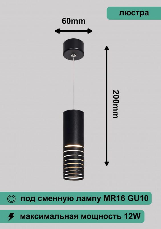 Светильник подвесной (подвес) ЭРА PL22 BK MR16 GU10 потолочный цилиндр черный 04828