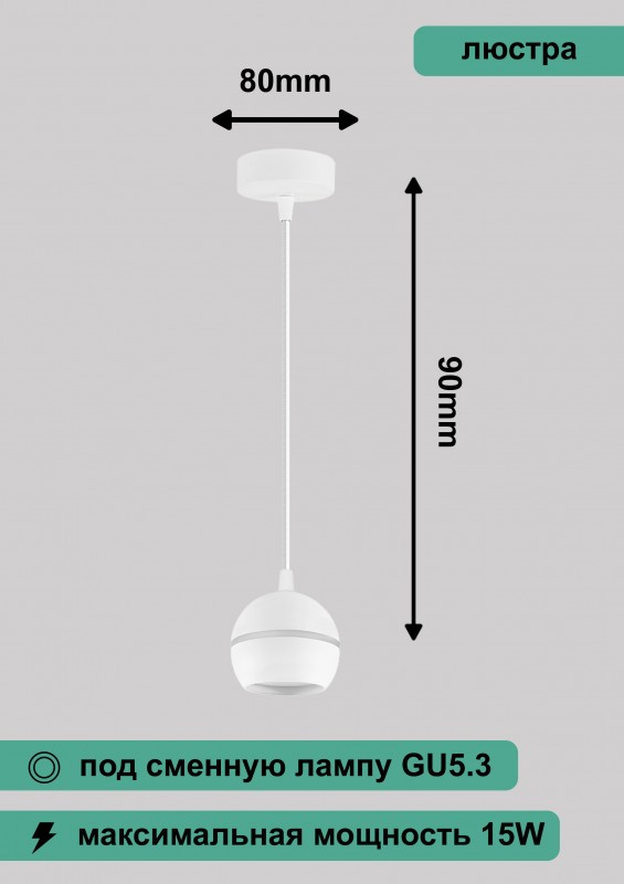 Светильник потолочный на подвесе GX53 15W 230V, белый D90*H80 HL3568 0472