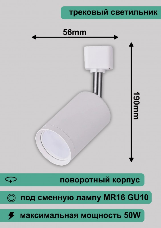 AL155 светильник трековый под лампу GU10, белый 190*56мм 268