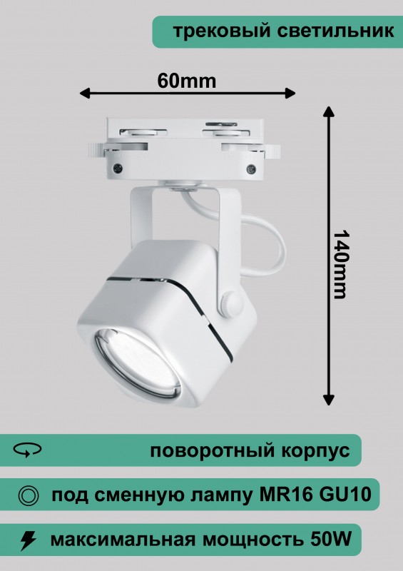 Al190 светильник трековый под лампу GU10, белый, 140*60мм 41589 274