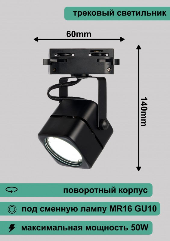 Al190 светильник трековый под лампу GU10, черный, 140*60мм 41590 275