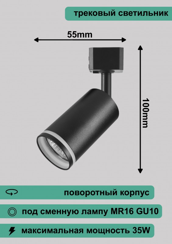 Светильник трековый LEEK GU10 TR10 черный 2764