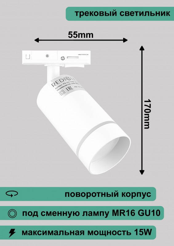 Купить Светильник трековый RG-GD103W Redigle белый с ободком GU10 55х170мм вы можете в компании Уют мастер, оформив заказ в интернет магазине, или