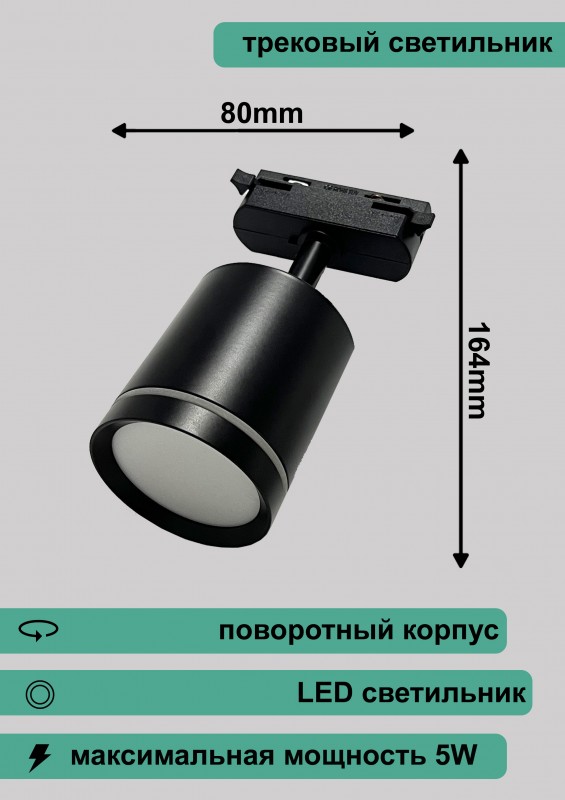 Светильник трековый RN210 WT BAUF 5W 4000K (80*68*164) Черный 2932