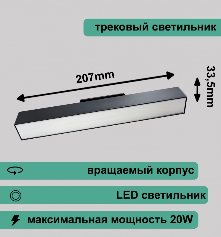 Вращаемый линейный трековый светильник матовый 20Вт 4000K черный RG-GD2006B Redigle 207*33.5*56 35393
